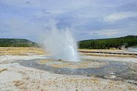 Dit gebied van Biscuit Basin in Yellowstone National Park was extreem rustig. Waarschijnlijk omdat het een beetje een saai gebied was. Maar net toen we wilden vertrekken, begon de Jewel Geyser uit te barsten.