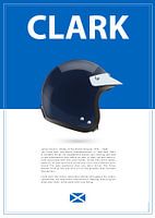 Afdrukken met de persoonlijke valhelmen van beroemde autocoureurs uit de jaren zestig.