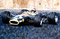 Illustratie van een serie legendarische Formule 1-racers en hun coureurs. Ontworpen uit liefde voor het klassieke racen. Geschilderd met aquarellen op papier.