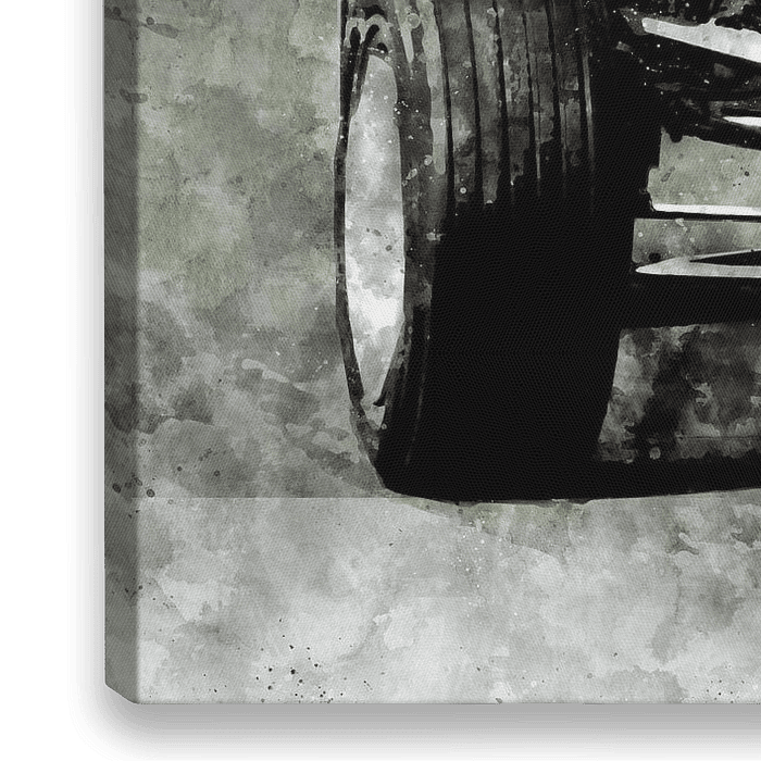Illustratie van een serie legendarische Formule 1-racers en hun coureurs. Ontworpen uit liefde voor het klassieke racen. Geschilderd met aquarellen op papier.