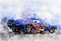 Illustratie van een serie legendarische dragsters en hot rods. Geschilderd met aquarellen op papier.