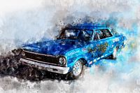 Illustratie van een serie legendarische dragsters en hot rods. Geschilderd met aquarellen op papier.