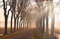 Na de mistige zonsopkomst verder de polder , de Schermer in gefietst. En als de zon dan een beetje begint door te breken krijg je van die zonneharpen. De polder kenmerkt zich door strakke bomen rijen , bruggetjes en ringvaarten.