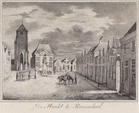 stadsgezicht naar Louis Charles Hora Siccama, 1831 met de toren van de Sint Janskerk (enkele jaren voor de bouw van de huidige kerk) en het raadhuis.