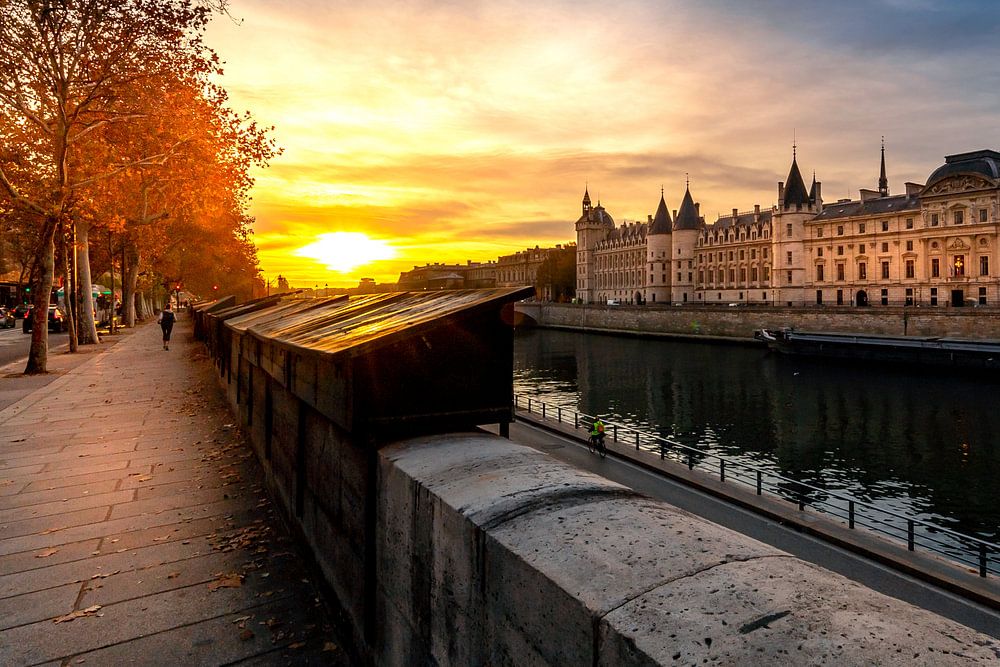 'S Ochtends in de ochtend is een ochtend in de morgen. Kade Francois Mitterand in Parijs.