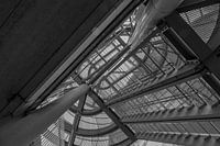 Deze fraaie zwart-wit foto is onderdeel van een serie en toont de beroemde Johan Cruijff Arena in Amsterdam, de thuishaven van de wereldberoemde voetbalclub AJAX.