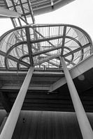 Deze fraaie zwart-wit foto is onderdeel van een serie en toont de beroemde Johan Cruijff Arena in Amsterdam, de thuishaven van de wereldberoemde voetbalclub AJAX.