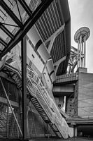 Deze fraaie zwart-wit foto is onderdeel van een serie en toont de beroemde Johan Cruijff Arena in Amsterdam, de thuishaven van de wereldberoemde voetbalclub AJAX.