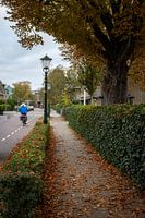 Foto van een stoeplamp en een boom met gele bladeren op op Johan de Wittstraat in Wassenaar.