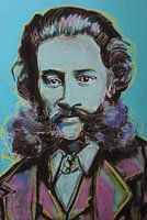 Portret van de Oostenrijkse meester van de wals, Johann Strauss Jr. (1825-1899). Het origineel is gemaakt met pastelkrijt en inkt op gekleurd kartonpapier, gebaseerd op een zwart-wit foto.