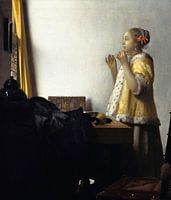 Johannes Vermeer (1632 - 1675) is een van de beroemdste Nederlandse kunstschilders en leefde in de Gouden Eeuw. Vermeer had een voorkeur voor tijdloze, ingetogen momenten. Hij blijft raadselachtig vanwege de onnavolgbare kleurstelling en het verbijsterende lichtgehalte. Vermeers schilderijen, meestal genrestukken en een paar historiestukken, allegorieën en stadsgezichten, onderscheiden zich door een subtiel kleurgebruik en een ideale compositie. Hij gebruikte soms dure pigmenten en had een grote voorkeur voor ultramarijn en loodtingeel.