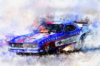 Illustratie van een serie legendarische dragsters en hot rods. Geschilderd met aquarellen op papier.