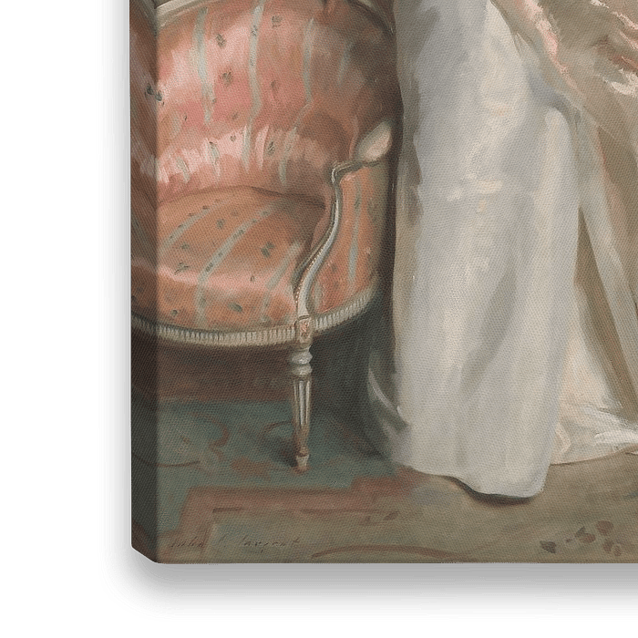 De omgeving gaat qua kleur helemaal in het geheel mee. De pastelkleuren met teinten van bruin en grijs, geven dit schilderij van de oude meester John Singer Sargent een rustgevende uitstraling.