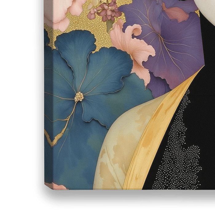 Jolie - Portretschilderij met bloemen in eigentijdse kleuren - Toon je moed met dit moderne en abstracte kunstwerk, dat doet denken aan de grote werken van de oude meesters. Kies zelf het formaat en het materiaal uit de vele opties. Verander je huis in een toevluchtsoord van kunst, precies zoals jij het wilt!