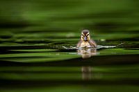 Nieuw leven op de plas. Erg aandoenlijk en dan is het natuurlijk enorm leuk als zo'n lief jong eendje zo je beeld binnen zwemt.