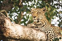 Jong luipaard starend op een tak in een boom van Simone Janssen