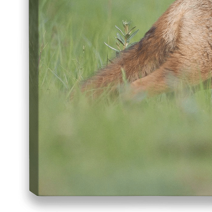 Jonge vos in alerte houding in de duinen