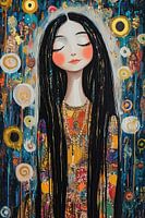 Koop dit abstracte kunstwerk Jonge Vrouw Levendige Achtergrond van Blikvanger Schilderijen op canvas, aluminium dibond, (ingelijste) fotoprint, behang en ArtFrame, op maat geprint in Fine-Art kwaliteit.