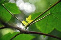 De vormen, lijnen en lichteffecten maken de foto bijna abstract maar het frisse groen van de blaadjes in het midden maakt duidelijk waar het om gaat: nieuw leven in het voorjaar. De foto is gemaakt in Cassiobury Park, Watford, Engeland, maar had natuurlijk overal genomen kunnen worden.