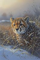 Dit prachtige kunstwerk toont een jonge cheeta die zich door het winterse gras waagt. De delicate details van de cheeta’s vacht, bedekt met fijne sneeuwvlokjes, contrasteren prachtig met de ijzige omgeving. De zachte kleuren en de serene achtergrond creëren een rustgevende sfeer, perfect voor elke liefhebber van wilde dieren en natuur. Dit schilderij brengt de schoonheid van de natuur en de majesteit van de cheeta in huis, en voegt een vleugje elegantie en rust toe aan elke ruimte. Perfect voor een kantoor, slaapkamer of elke plek waar je wat natuurlijke pracht en kalmte wilt toevoegen.