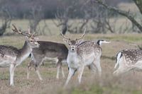 Jonge damherten met stippen. Waarvan één de camera in de smiezen heeft gekregen. Genomen in de Amsterdamse Waterleiding duinen.