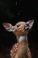 Dit betoverende kunstwerk vangt de pure verwondering van een jong hert dat voor het eerst de regen ervaart. De hyperRealistisch stijl brengt elk detail tot leven, van de waterdruppels die van zijn vacht glijden tot de nieuwsgierigheid in zijn ogen. Het donkere bos op de achtergrond creëert een gevoel van mysterie en benadrukt de kwetsbaarheid van het jonge dier. Een prachtig stuk dat een vleugje natuur en verwondering in elke ruimte brengt.