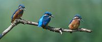Koop dit vogel kunstwerk Jonge ijsvogels - drie op een rij van IJsvogels.nl - Corné van Oosterhout op canvas, aluminium dibond, (ingelijste) fotoprint, behang en ArtFrame, op maat geprint in Fine-Art kwaliteit.
