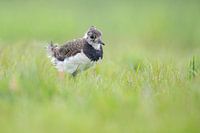 Jonge kieviet tussen de dauwdruppels van de vroege morgen. Het kuifje begint al wat te groeien.
