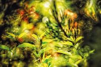 Natuurfotografie van jonge bladeren in het voorjaar met zonneschijn