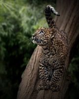 Koop de foto Jonge luipaard kijkt naar de zon van Patrick van Bakkum als print op canvas, aluminium dibond, (ingelijste) fotoprint, behang en ArtFrame. Voor jou op maat geprint in Fine-Art kwaliteit.