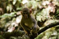 Jonge makaak  in het Chinese bos van Zoe Vondenhoff