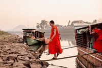 Koop de foto Jonge monikken bij de Mekong Rivier in Laos van Romy Oomen op canvas, aluminium dibond, (ingelijste) fotoprint, behang en ArtFrame, op maat geprint in Fine-Art kwaliteit.