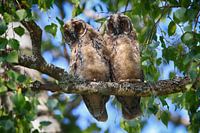 Jonge ransuilen (Asio Otus) zittend in een boom, Duitsland