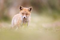 Een prachtige jonge rode vos kijkt et een indringende blik