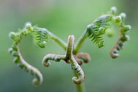 De fraaie grillige vormen van een ontluikende varenplant trokken mijn aandacht.
