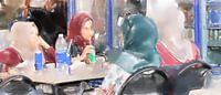 Jonge vrouwen in een straatcafé in Aqaba, Jordanië