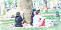Jonge mannen en vrouwen die op het gras zitten in een park in Istanbul, Turkije