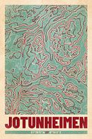 Het Jotunheimen National Park in Noorwegen als topografische kaart. Retrostijlkaart met hoogtelijnen. Stijlvolle print voor wandelaars, bergbeklimmers en outdoorfans - ook als cadeau-idee!