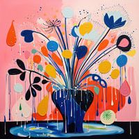 De bloemen lijken te dansen op een ritme van licht en vrolijkheid — een moderne interpretatie van een klassiek stilleven.