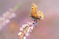 Een vlinder die heerlijk rond dwarrelde en even ging zitten op de roze heide.