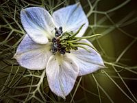 Close-up van de witte bloem van een Juffertje in het Groen plant.