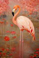 Een kleurrijk digitaal schilderij van een Flamingo in jugendstil stijl. Het werk geeft een warme en klassieke uitstraling aan uw interieur!