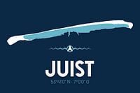 Juist - het vakantie-eiland voor de kust van Oost-Friesland als een minimalistische kaart. Decoratief ontwerp voor alle Noordzeeliefhebbers die van de zee houden - ook als cadeau-idee!