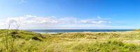 Panoramisch uitzicht vanaf de duinen tot aan de Noordzee op het Oost-Friese Noordzee-eiland Juist in Duitsland, Europa