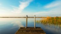 Zonsopkomst boven het Zwarte Brekken, bij SNeek, Friesland. Na een koude nacht hing er mist boven het water. De zon werd snel sterker en probeerde door de mist heen te branden. Een mooi begin van een mooie dag! Als het niet zo koud was zou je zo de steiger af willen springen.