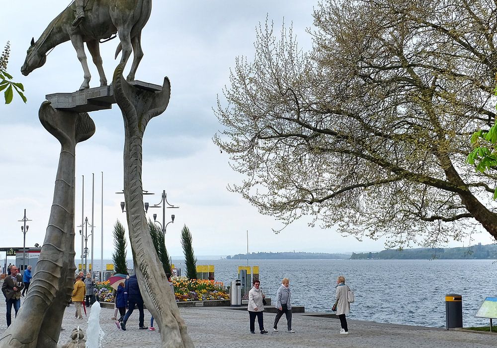 am Bodensee. Der Reiter stellt Martin Walser dar, auf dünnem Eis.