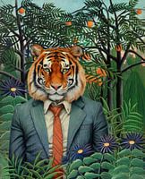 Dit is een collage van afbeeldingen, deels vervaardigd door Artificial Intelligence (de tijger), grotendeels door de Franse kunstschilder Henri Rousseau (1844-1910).