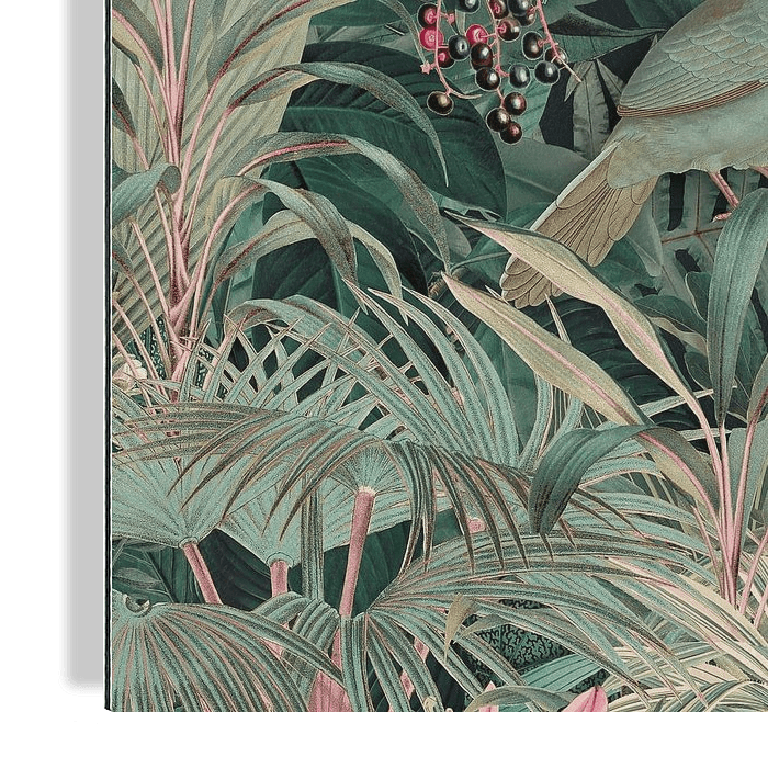 nostalgische kunstcollage met tropische vogels, vlinders en exotische bloemen in pastelkleuren