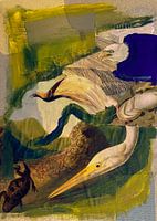 Een samenstelling van vogelplaatjes uit de collectie van het Teyler's Museum. Het hergebruik van illustraties van weleer in een nieuwe eigentijdse compositie gemixt met verfstreken in blauw en geel maken deze vogels tot een prachtig kunswerk.
