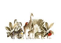 Prachtige afbeelding van jungle dieren en botanische elementen. De zebra en giraffe zullen niet misstaan in een bohemien interieur. Als behang of als afbeelding met een mooie lijst, het is allemaal mogelijk. In mooie ingetogen kleurstellingen met hier en daar kleur.